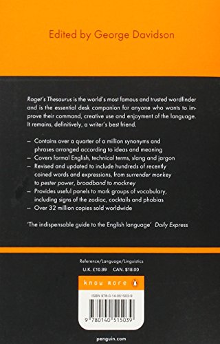 Roget's Thesaurus of English Words and Phrases pdf download - Roget's Thesaurus of English Words and Phrases a été écrit par qui connu comme un auteur et ont écrit beaucoup de livres intéressants avec une grande narration. Roget's Thesaurus of English Words and Phrases a été l'un des livres de populer sur 2016. Il contient 848 pages et disponible sur format . Ce livre a été très surpris en raison de sa note rating et a obtenu environ avis des utilisateurs. Donc, après avoir terminé la lecture de ce livre, je recommande aux lecteurs de ne pas sous-estimer ce grand livre. Vous devez prendre Roget's Thesaurus of English Words and Phrases que votre liste de lecture ou vous serez regretter parce que vous ne l'avez pas lu encore dans votre vie.Rang parmi les ventes Amazon: #15446 dans LivresPublié le: 2004-08-05Sorti le: 2011-04-28Langue d'origine: AnglaisNombre d'articles: 1Dimensions: 7.70" h x 1.60" l x 5.00" L, Reliure: Broché848 pagesPrésentation de l'éditeurRoget's Thesaurus ranks as one of the greatest English language reference works, used for generations by anyone looking for help in order to write a letter, prepare a speech, solve a crossword, or write any manner of prose or poem. Its sales now exceed 32 million copies. This edition has been revised and updated to include all the latest buzzwords and phrases. In addition this new edition of Roget contains useful panels of additional information that include such nuggets of information as signs of the zodiac and the origins of familiar quotations that have become an integral part of our everyday language.Biographie de l'auteurPeter Mark Roget created a classed catalogue of words on a small scale in 1805 for his own use as a writer and lecturer. However, it was only after retiring from the duties of Secretary of the Royal Society that he was able to amplify the volume and create the now famous 1852 edition. Since then, Roget's Thesaurus has been updated many times, but Roget's original classification system for the book has stood the test of time and is still used today.George Davidson is a highly experienced editor and lexicographer, and a former senior editor at Chambers Harrap. He edited the 150th anniversary edition of Roget and is currently writing a Pocket Roget Thesaurus. He lives in Edinburgh.